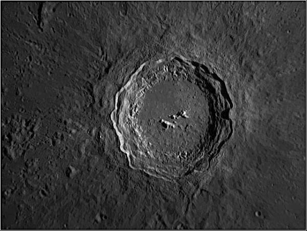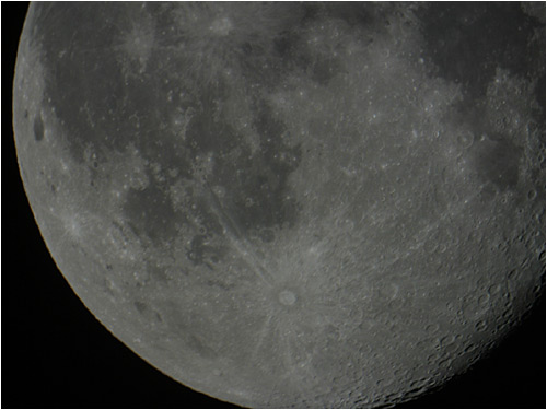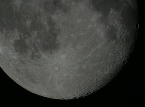 © P. DingleyLunar photo taken on 18th Feb 2003 at 21:30 GMT using a Canon D60 digital camera at prime focus of the Sherwood Observatory 61cm Newtonian Reflector.In this image the moon is 17-days old. The large impact crater in the lower center of the image is Tycho - probably the most well known, and certainly the most visible crater on the lunar surface.