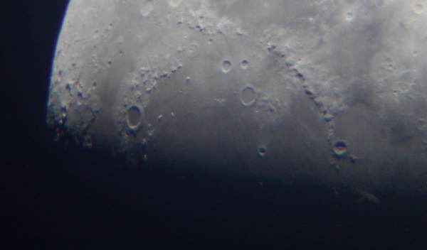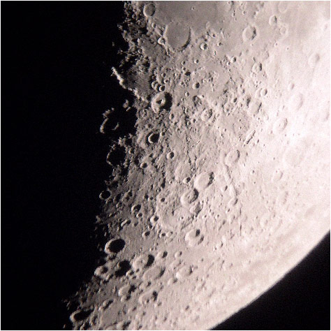 © G. ShepherdLunar photograph taken on 3rd April 2006 at 20:45 GMT by Graham Shepherd using a Nikon Coolpix digital camera and the eyepiece projection method.This photograph was taken by society member Graham Shepherd, from the observatory using a Nikon Coolpix digital camera, and the observatory's 61cm telescope via the eyepiece projection method.