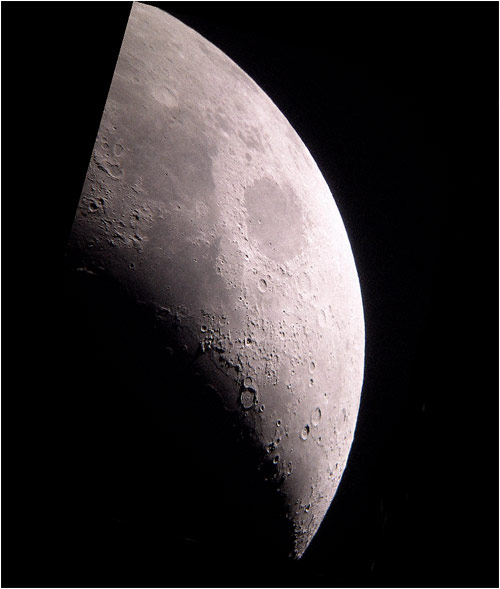 © P. DingleyLunar photo taken on 18th Feb 2003 at 21:30 using a Canon D60 digital camera at prime focus of the Sherwood Observatory 61cm Newtonian ReflectorIn this image the moon is 17-days old, and the terminator is just beginning to appear, falling across the edge of Mare Crisium at the right of the image.