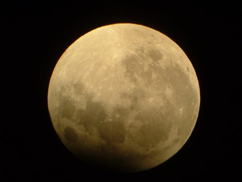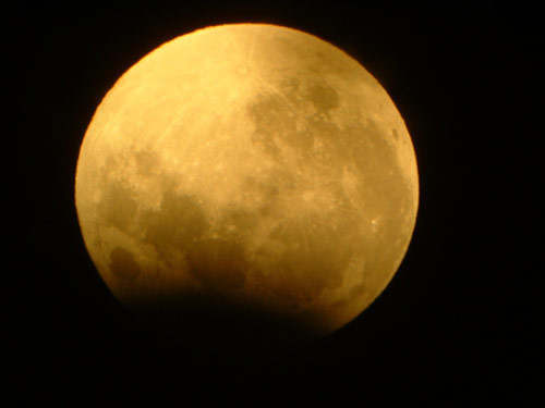 © P. RandallThis photograph of the March 2007 Lunar Eclipse was submitted by society member Mr P. Randall.The photograph was taken at around 11:38PM on March 3rd 2007 using a Canon 300D with a Sigma 75 - 300mm Zoom lens (on a tripod). Set at 300mm, ISO 1600, 1.3 seconds at F7.1.