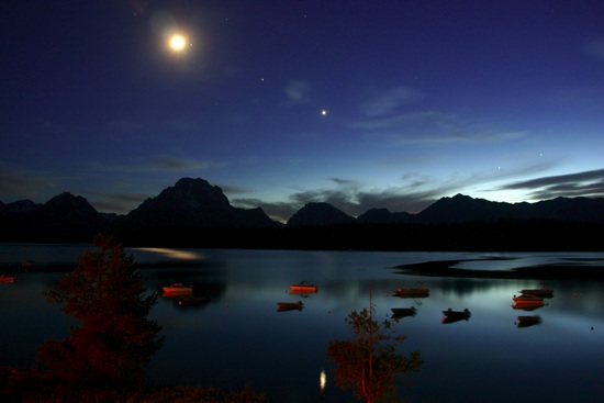 © P. RandallJackson Lake, Grand Teton National Park, Wyoming USA by Mr P. Randall.The photograph of the Moon Venus and Saturn over Jackson Lake, was taken at the Grand Teton National Park, Wyoming USA on the 19th June 2007 at approximately 10:22PM
