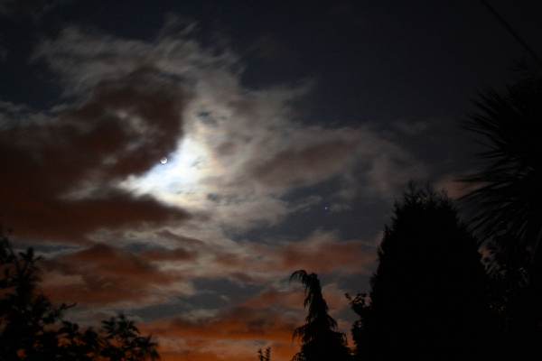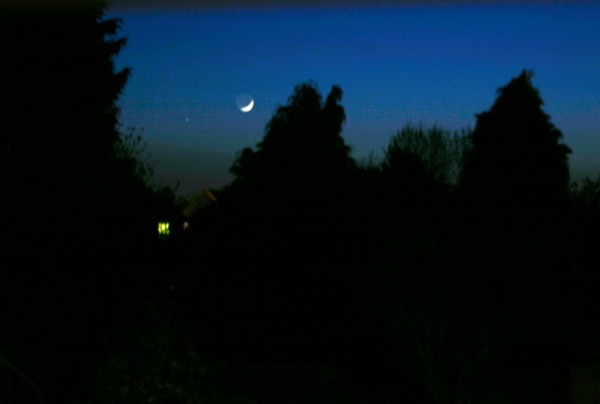 © G. ShepherdThe following photograph of the Moon and Venus was submitted by society member Mr G. Shepherd, for the April 2007 picture of the month. The picture was taken at 21:30 on the 18th April 2007, and features the Moon age 1d 10m, and the planet Venus. It was taken from Tattershall Bridge with a Nikon Coolpix 4300 at f2.9 with a shutter setting of 1/3.8.