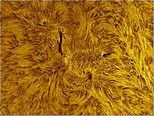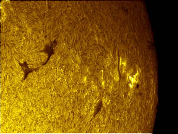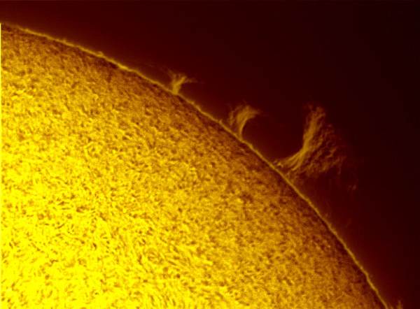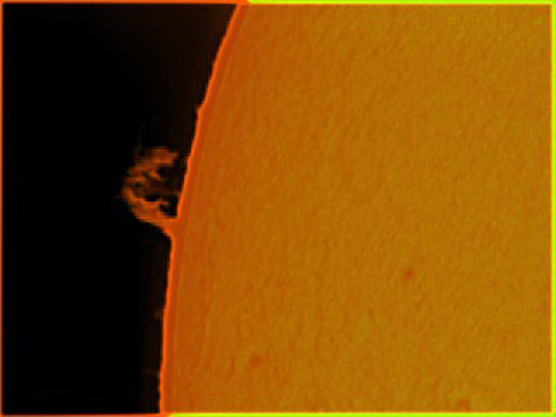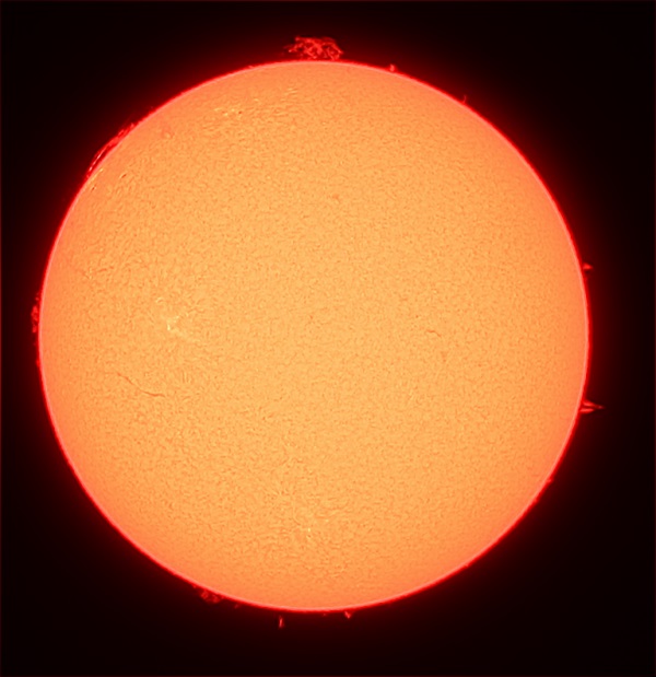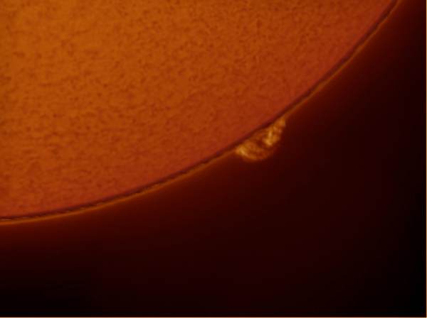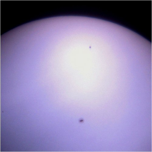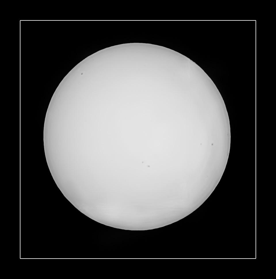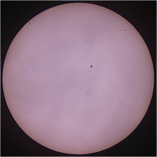 © P. DingleyThe Sun on 7th May 2003 using a Canon D60 digital camera and a 6 inch Celestron Refractor telescope fitted with a hand-made $15 Solar Filter.This image was taken at approximately 09:48 GMT from Sherwood Observatory, the home made Solar filter consisting of a sheet of Baader AstroSolar film, stretched across a tubular cardboard former was fitted to the front of the telescope optical tube.