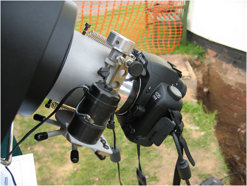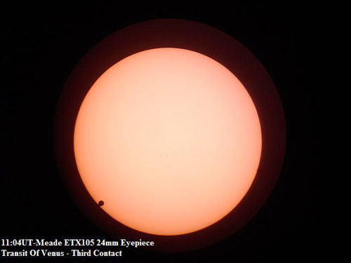 © P. DingleyThe Venus transit photographs on this page were all taken using a 10 inch Meade LX-200 telescope, fitted with a Van-Slyke M3 focuser and a Canon D60 SLR digital camera, as pictured below.The telescope was fitted with a BC&F White Light solar filter via a BC&F Focusmaster.