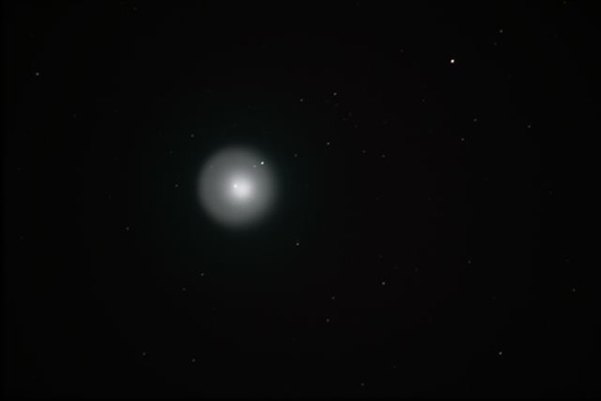 © G. JenkinsonThe following picture of the 17P Holmes comet was taken by society member Mr Graham Jenkinson, and submitted to the October 2007 members picture contest. The picture was taken using a 12 inch F6 telescope at the prime focus and a total exposue time on 7 frames of 2 minutes and 59 seconds with a Canon D350 camera set at 200 asa. The picture was taken on 28th October 2007.