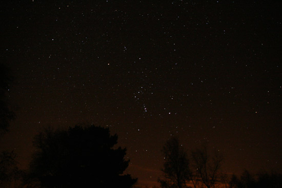 © S. Shetliffe'Orion Rising with Skyglow' by Steve Shetliffe.This image was taken at 0:36 UT from Kelling Heath in Norfolk, with a Canon 350D Digital SLR camera and an 18mm focal length lens set to f3.5. The camera was set to ISO1600 and a 19 second exposure was used to capture the constellation detail.