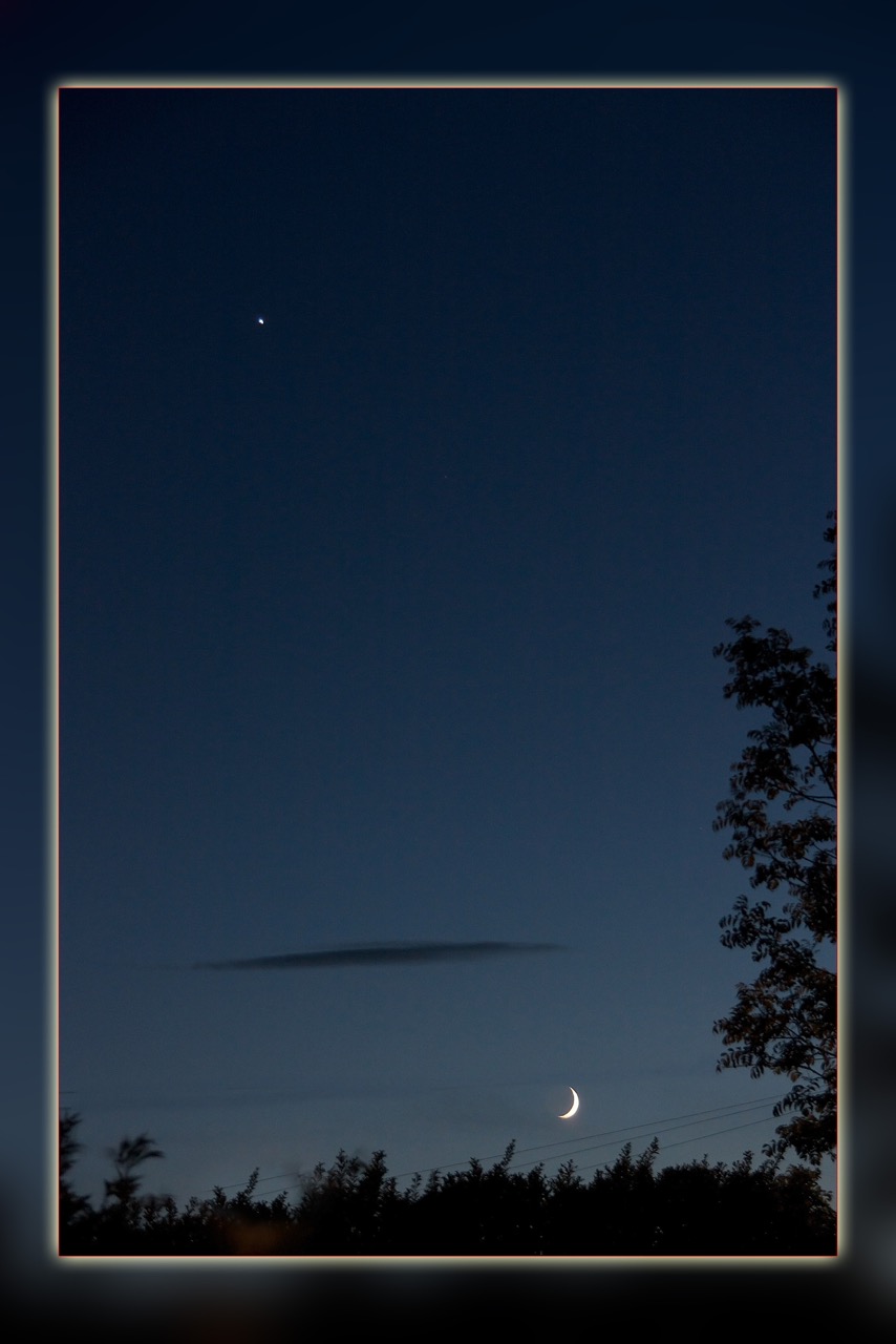 © G. ShepherdThe following photograph of the Moon and Venus was submitted by society member Mr G. Shepherd, for the April 2007 picture of the month. The picture was taken at 21:30 on the 18th April 2007, and features the Moon age 1d 10m, and the planet Venus. It was taken from Tattershall Bridge with a Nikon Coolpix 4300 at f2.9 with a shutter setting of 1/3.8.