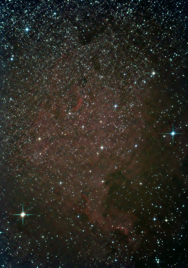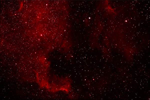 © C. RadfordNGC 7000 North American Nebula by Chris RadfordThis picture of NGC 7000 was taken by society member Chris Radford from Alfreton in Derbyshire, using a modified Canon 350D camera coupled to a Williams Optics ZS66 APO reflecting telescope, fitted with a 0.8 reducer/flattener.