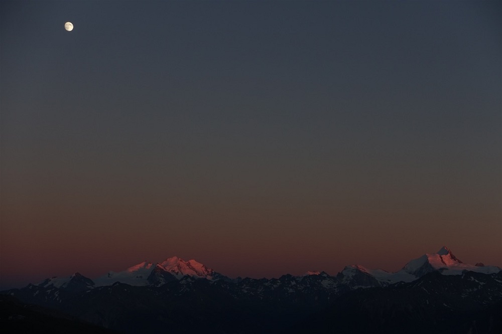 © Rick Field‘Moon from the Gemmi Pass, Switzerland’ by Rick Field, taken with his Sony RX100 MKIII.The Valaisian Alps 4000m peaks shown are from left to right: Nadelhorn, Dom, Tashchorn, then in the middle the highest peak,(but furthest away) the Dufourspitze, then Bishorn and Weisshorn with the Grand Gendarme.