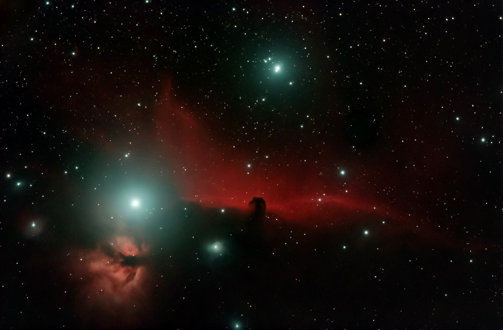 © Peter JenkinsHorsehead (IC434) and the Flame Nebula (NGC2024)Taken with QHY8L camera through a William Optics FLT110 DDG refractor with 0.8x reducer/flattener guided using a QHY5II on a William Optics ZS71 all on a pier mounted NEQ6.
