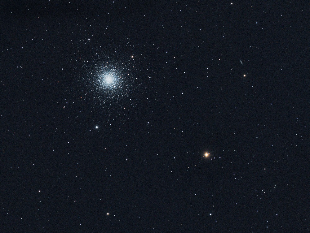 © Peter JenkinsMessier 3, photographed 6th June 2016, is a globular cluster of stars in the northern constellation of Canes Venatici. This cluster is one of the largest and brightest, and is made up of around 500,000 stars. It is estimated to be 8 billion years old.It is located at a distance of about 33,900 light-years away from Earth.