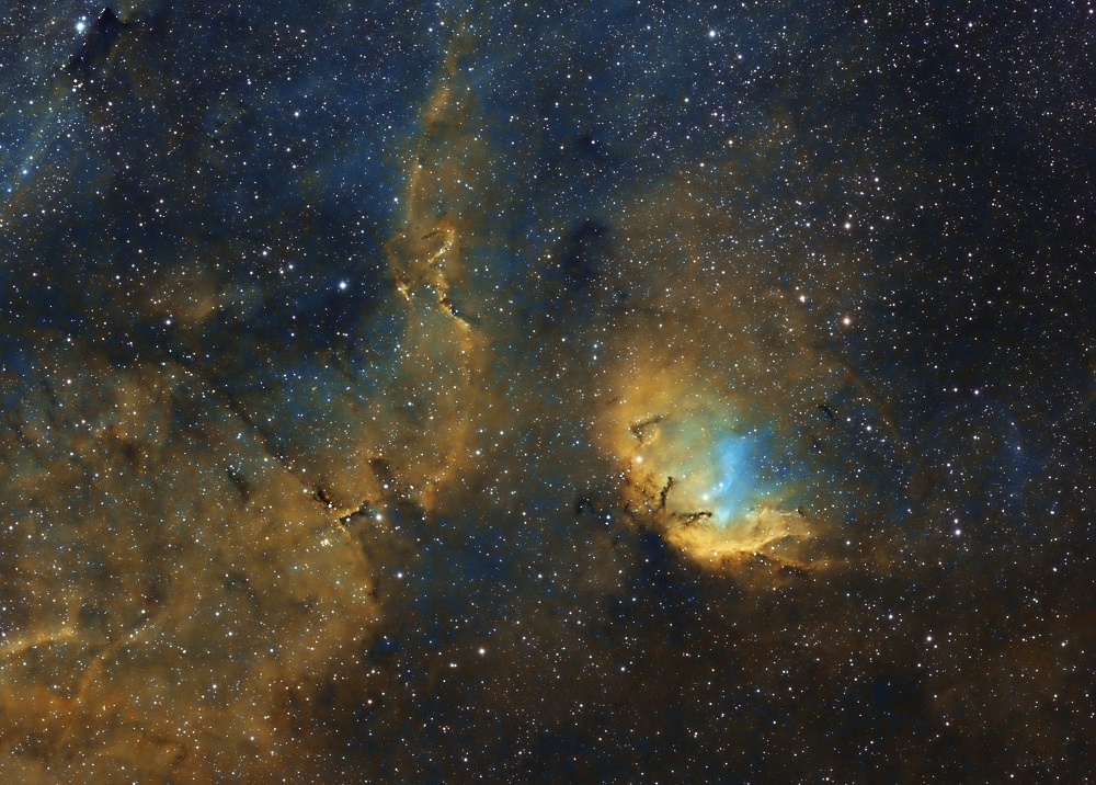 Taken with Officina Stellare 115 Apo, Atik 383l+ mono and Baader Ha, OIII and SII filters.