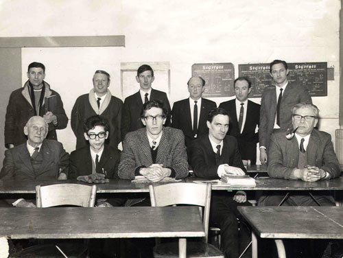 Front Row: Mr T. A. Woolrich, Mr P. A. Bell (committee member), Mr Graham W. Shepherd (committee member), Mr Hislopp, Mr W.H. Barnett.