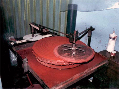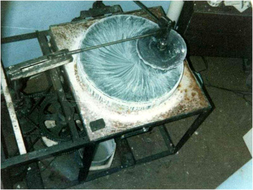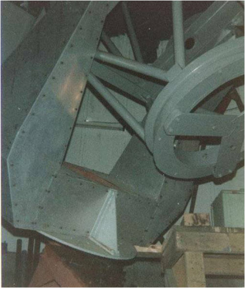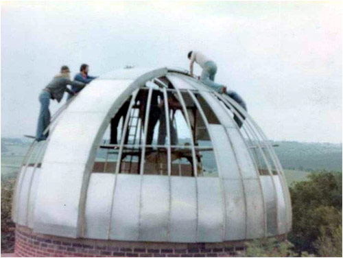 © MSASThe photograph shows the main rib-work for the observatory dome being gradually fabricated in-situ.The base of the dome is constructed from two U-shaped girders, manually bent into a semi-circular shape using a large hydraulic trolley-jack, and then welded together to form a circle (with the U-form facing inwards).