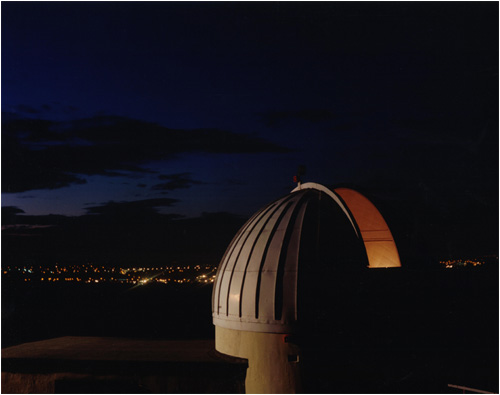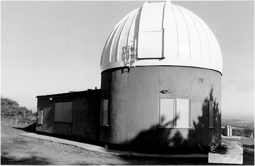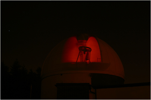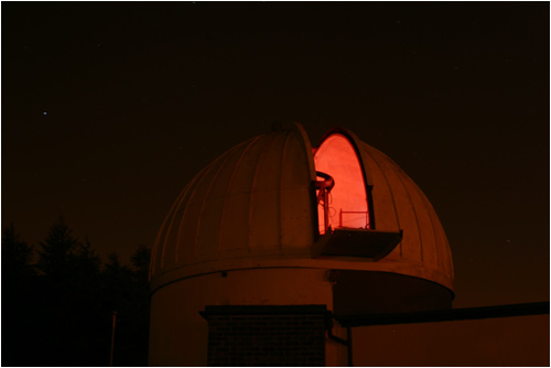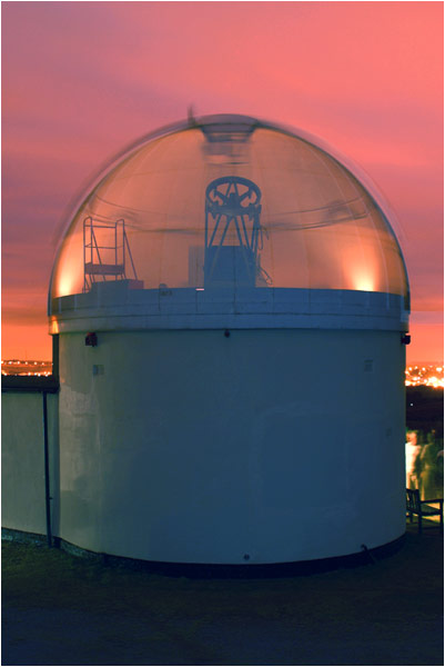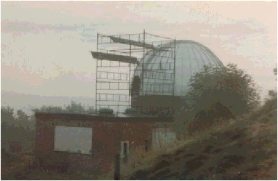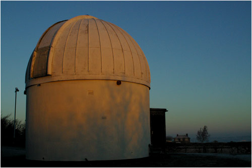 © P. DingleyThe photograph of the observatory dome was taken on the 15th February 2003, at approximately 07:45 on a particularly chilly morning, with air temperatures of approximately -4° Celsius.The camera is towards the south-east side of the building, looking approximately North-North-West.