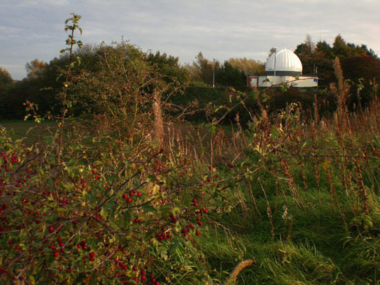 © M. KnowlesThe following image, submitted for the September image of the month by Mr M. Knowles was taken on the 19th September 2006 at 14:40 (2:40PM) using a Fuji Finepix 2.0 A202 camera.The picture is a View of the Sherwood Observatory, taken from the entrance driveway shortly after the annual summer maintenance team had completed repainting the external walls and dome.