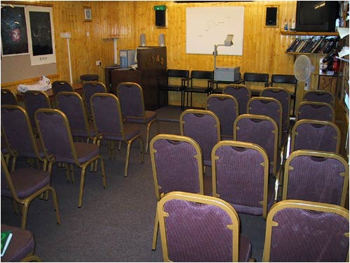 © P. DingleyAs well as the 21-foot rotating dome, the Sherwood Observatory also houses a 50-seat lecture room, used for society meetings and to host the presentations and courses for members of the public. The photograph below taken on 23rd April 2003 shows the lecture room with the new seating in place.