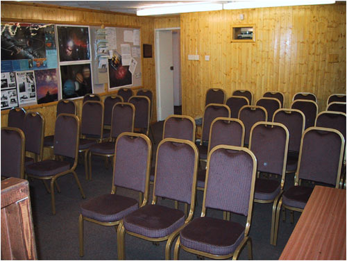 © P. DingleyAs well as the 21-foot rotating dome, the Sherwood Observatory also houses a 50-seat lecture room, used for society meetings and to host the Astronomy Explored evening course run by the society in conjunction with Nottingham University.The photograph below taken on 23rd April 2003 shows the lecture room with the new seating in place.